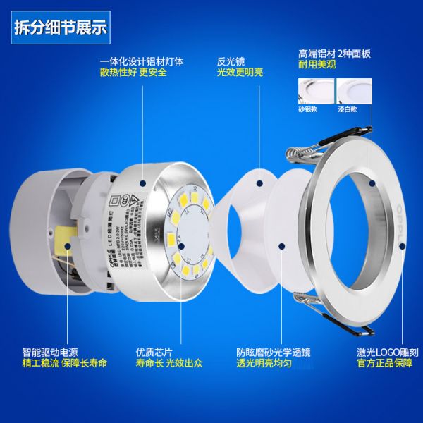 欧普筒灯【开孔尺寸】7~13cm多尺寸【功率】3~11瓦 精装铝材款
