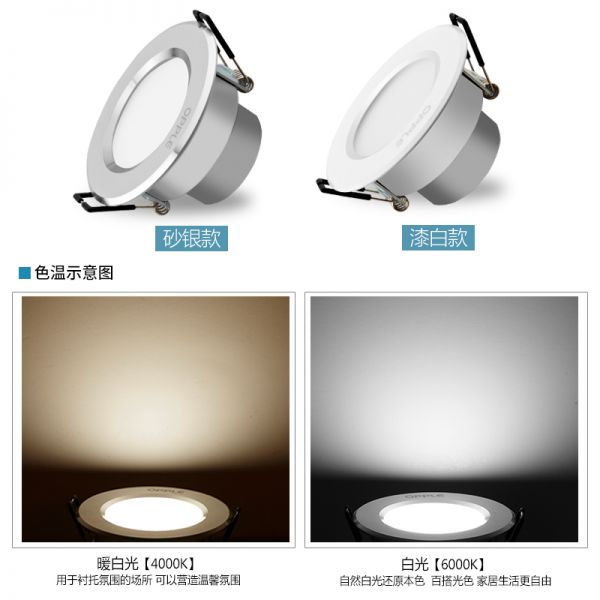欧普筒灯【开孔尺寸】7~13cm多尺寸【功率】3~11瓦 精装铝材款